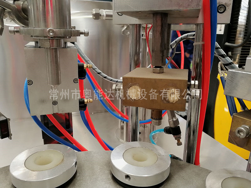 塑料復合軟管灌封機主要用于一次傳動原理。利用分度機構帶動裝有夾具的轉盤作間歇運動,完成自動灌裝及內外加熱、封尾、壓碼、切邊、成品退出等一系列功能。灌裝計量準確,加熱時間穩定、可調、封尾外觀漂亮、整齊、牢固、衛生。切邊平整。該機設為10個工位,自動完成。整機運行平穩可靠,無噪音和其它污染。
